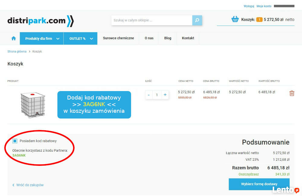 Kod rabatowy: 3AG6NK (3% zniżki na glikol etylenowy, glitherm). Kod rabatowy 3AG6NK jest ważny przez pięć lat od momentu aktywacji i uprawnia do zniżek od 3% do nawet 20% ceny na produkty dostępne na platformie e-commerce: distripark.com. Dodaj kod rabatowy w koszyku zamówienia. Więcej informacji pod numerem telefonu podanym w ogłoszeniu.